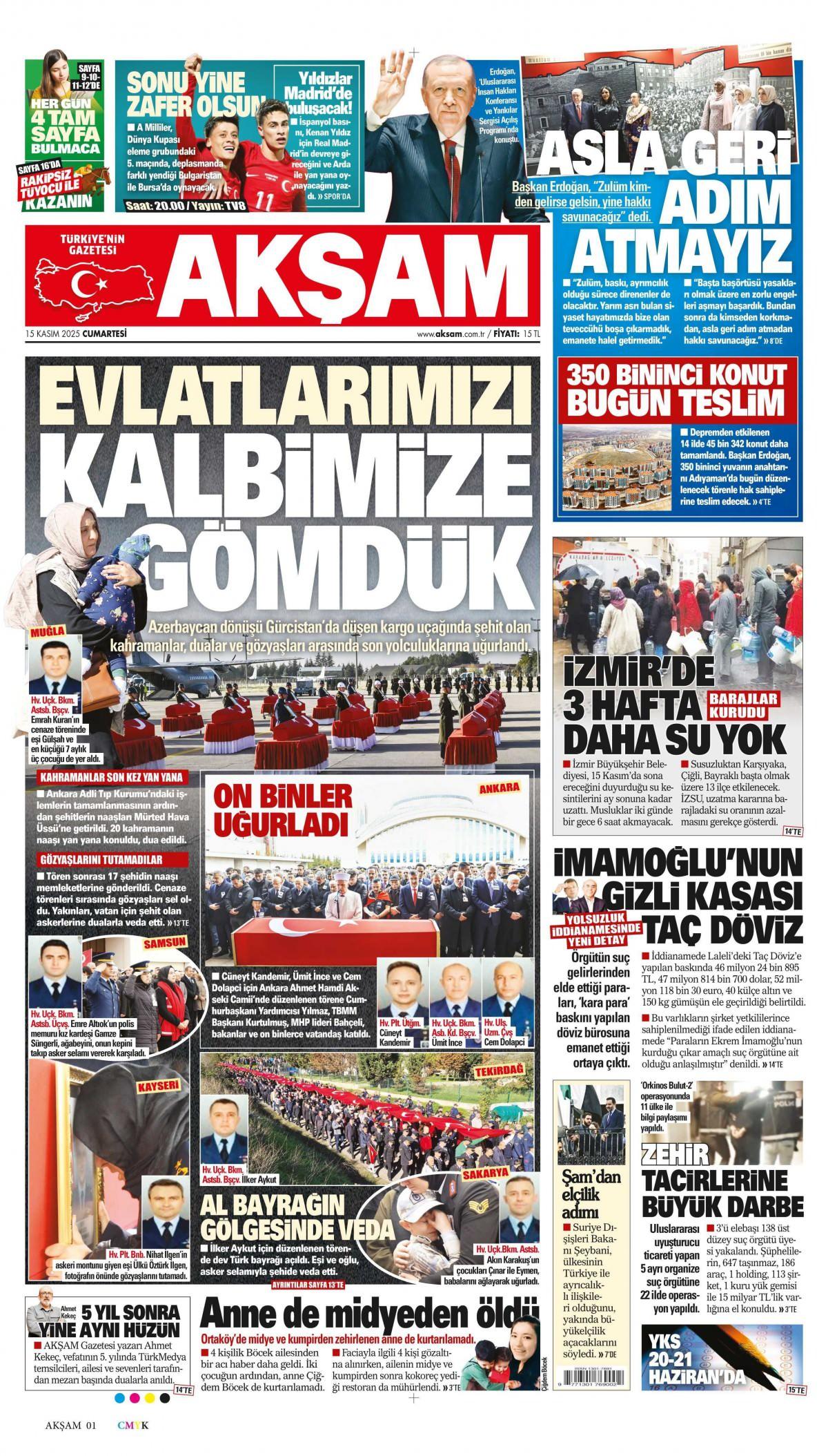 Akşam Gazetesi 15 Kasım 2025 Günü Manşeti
