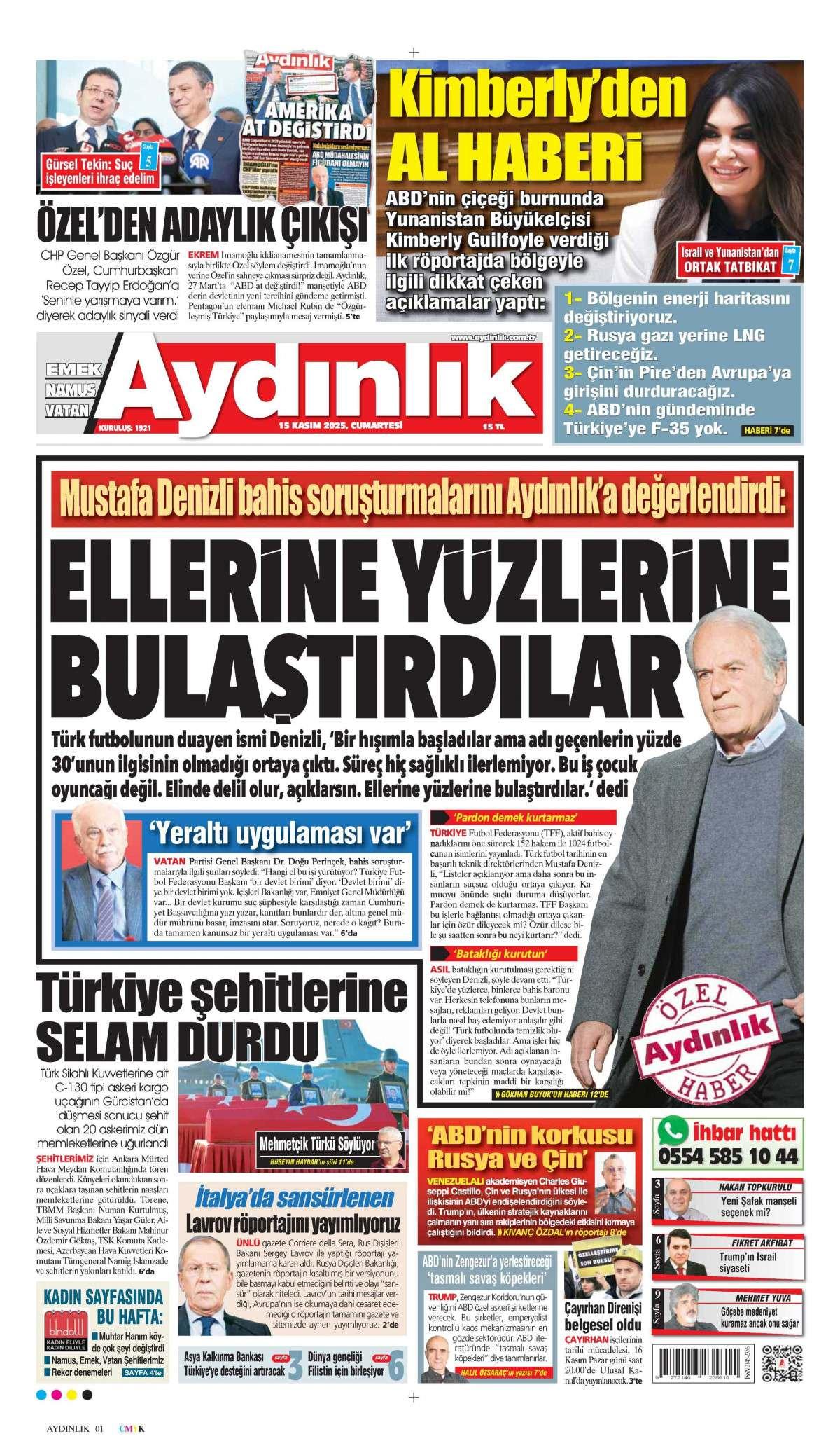 Aydınlık Gazetesi 15 Kasım 2025 Günü Manşeti