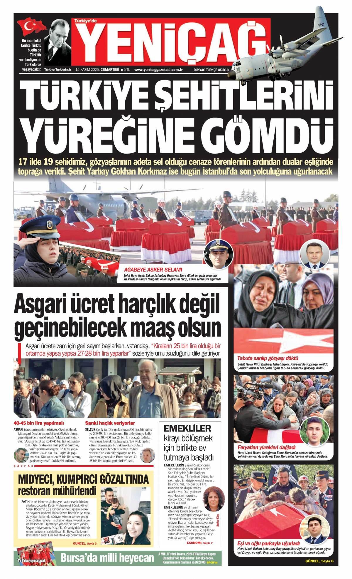 Yeni Çağ Gazetesi 15 Kasım 2025 Günü Manşeti